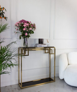 Unsere goldfarbenen Konsolen sind nicht nur Möbel, sie sind auch einzigartige Akzente, die einem Raum einen luxuriösen Touch verleihen. Ihr auffälliges goldenes Finish macht sie zum Mittelpunkt jeder Einrichtung und schafft eine Atmosphäre von Eleganz und Raffinesse. Goldene Konsolen sind äußerst vielseitig und passen zu einer Vielzahl von Einrichtungsstilen, von modern bis klassisch. Ihre Anwesenheit verleiht den Räumen einen einzigartigen Charakter und einen prestigeträchtigen Look. Entdecken Sie unsere Kollektion an goldenen Konsolen und lassen Sie Ihr Zuhause in einem exklusiven Glanz erstrahlen.