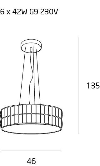 - Abmessungen der Hängeleuchte (B. x T.): 46 x 135 cm