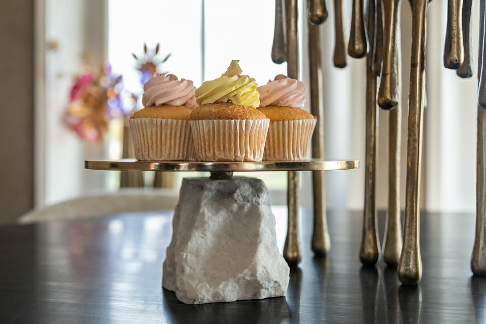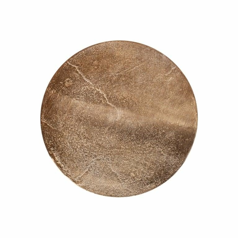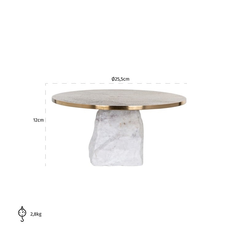 Entdecken Sie die raffinierte und geschmackvolle Celile Tortenplatte, die die Eleganz eines jeden Anlasses wunderbar ergänzen wird. Es ist ein außergewöhnliches Stück, das durch sein Design und seine Funktionalität besticht, ideal für Liebhaber von raffinierten Accessoires. Die Celile Kuchenplatte ist eine einzigartige runde Platte aus Aluminium, deren gealtertes Goldfinish ihr einen einzigartigen Charme verleiht. Die natürlichen Texturen verleihen ihm Authentizität und Charakter und schaffen einen einzigartigen Eindruck. Die Platte steht auf einem stabilen Marmorsockel, der ihre Eleganz und ihren Stil unterstreicht. Diese geschmackvolle Kuchenplatte ist nicht nur atemberaubend in ihrem Aussehen, sondern auch eine praktische und funktionelle Ergänzung für Ihre Küche oder Ihr Esszimmer. Ideal zum Servieren köstlicher Desserts, Kuchen oder Snacks bei Familienfeiern oder Partys mit Freunden. Die Platte passt perfekt zu goldenem Küchengeschirr und glamourösem Interieur. Dank der Celile Servierplatte können Sie nicht nur den Geschmack Ihrer Lieblingssüßigkeiten genießen, sondern auch die Ästhetik und Eleganz jedes servierten Gerichts. Beleben Sie Ihren Raum und machen Sie jeden am Tisch verbrachten Moment zu etwas Besonderem mit dieser einzigartigen Servierplatte.