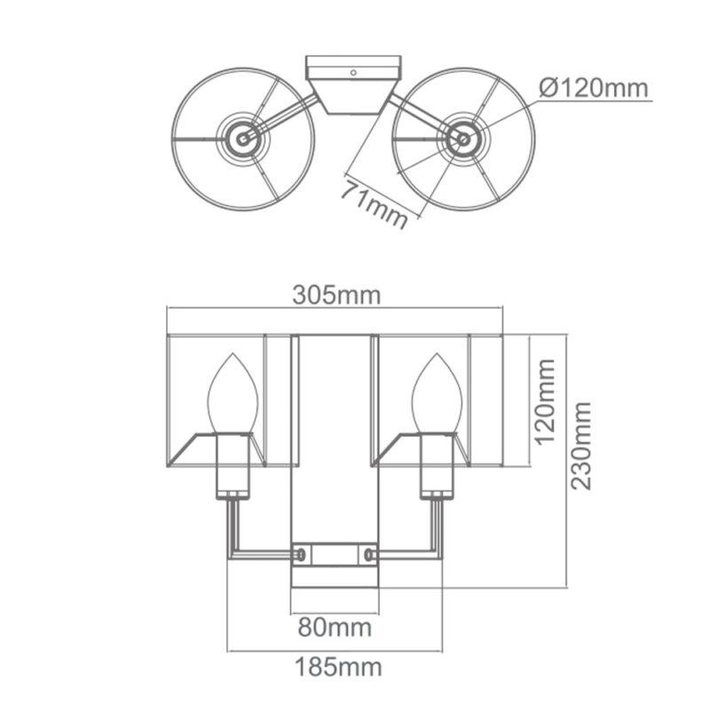 30,5×23 cm Anzahl der Leuchtmittel: 2 Gewinde: E14 Maximale Leistung: 8W Spannung: