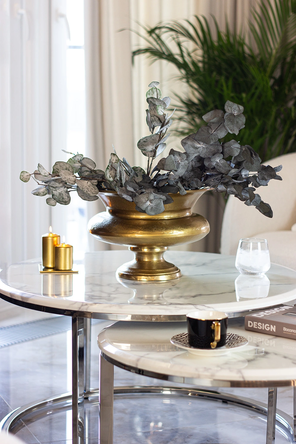 - Leicht zu komponieren: Perfekt als einzelnes dekoratives Element auf einem Tisch, einem Regal oder einer Kommode, aber auch in Kombination mit anderen Accessoires im Glamour-Stil für eine harmonische Raumkomposition.