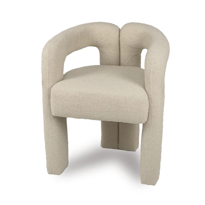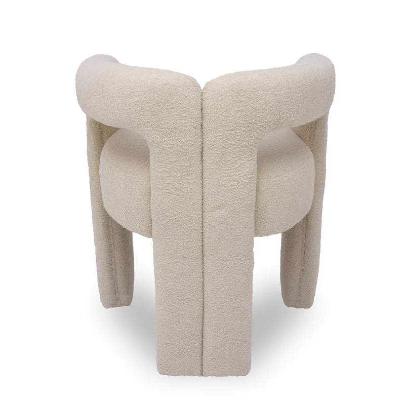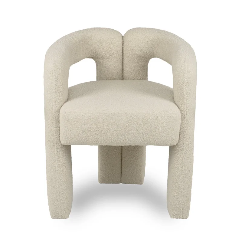 Machen Sie Bekanntschaft mit dem einzigartigen North Stuhl, der uns mit seinem futuristischen Design in die Zukunft entführt und gleichzeitig mit seinen sanften Farben und seiner Eleganz beeindruckt. Er ist ein einzigartiges Möbelstück, das durch seinen cremefarbenen Bouclé-Stoff auffällt und ihm einen außergewöhnlichen Stil verleiht. Der konturierte Sitz und die Rückenlehne bieten unglaublichen Komfort. Der Stuhl fügt sich perfekt in moderne Interieurs ein, begleitet von Tischen aus Marmor und Travertin. Der North Stuhl verbindet Modernität mit subtilem Charme und ist damit die perfekte Wahl für alle, die einzigartige Akzente in ihrer Einrichtung suchen. Die formschöne Rückenlehne und die Sitzfläche verleihen ihm einen einzigartigen Charme und unterstreichen den modernen Stil. Die originelle Form der Rückenlehne des North Stuhls fällt ins Auge und trägt zu seinem Charakter und Stil bei. Durch die helle Farbgebung passt er perfekt zur modernen Inneneinrichtung und ist nicht nur ein praktisches Möbelstück, sondern auch ein wirkungsvolles Dekorationselement. Der North Stuhl ist nicht nur ein Sitzmöbel für den täglichen Gebrauch – er ist ein wahres Kunstwerk, das jedem Raum Charakter verleiht. Wir empfehlen ihn besonders für moderne Esszimmer, wo er zu einer außergewöhnlichen Ergänzung wird, die den einzigartigen Stil und Geschmack des Besitzers unterstreicht.