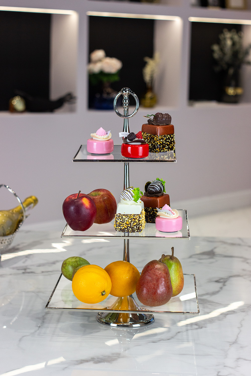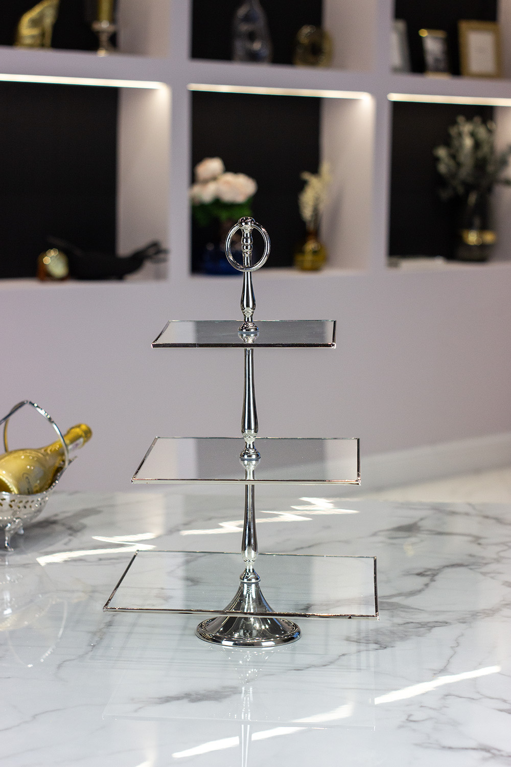 Mit seiner quadratischen Form und dem eleganten silbernen Farbton ist der dreistöckige Teller eine einzigartige Ergänzung für Ihr Interieur. Aus hochwertigem Glas gefertigt, strahlt sie Eleganz und Schönheit aus und zieht die Aufmerksamkeit auf sich. Diese dreifache Platte beeindruckt nicht nur durch ihr Aussehen, sondern bietet auch eine praktische Lösung. Auf drei separaten Ebenen können Sie Obst aufbewahren oder Snacks servieren, was Ihrer Einrichtung sowohl Eleganz als auch Funktionalität verleiht. Die Platte eignet sich sowohl für das tägliche Beisammensein als auch für besondere Anlässe wie Hochzeiten und Partys. Die Glasflächen der quadratischen Teller verleihen dem gesamten Design Leichtigkeit und Glanz, und der dekorativ verzierte Griff lässt die Platte klassische Eleganz ausstrahlen. Hochwertige Materialien und präzise Verarbeitung machen die Platte besonders schön und passen zu vielen Einrichtungsstilen – von modern bis klassisch. Jedes Element wurde präzise veredelt, was nicht nur eine ästhetische Wirkung, sondern auch Langlebigkeit und Stärke für viele Jahre gewährleistet.