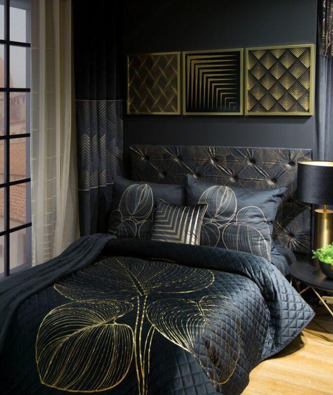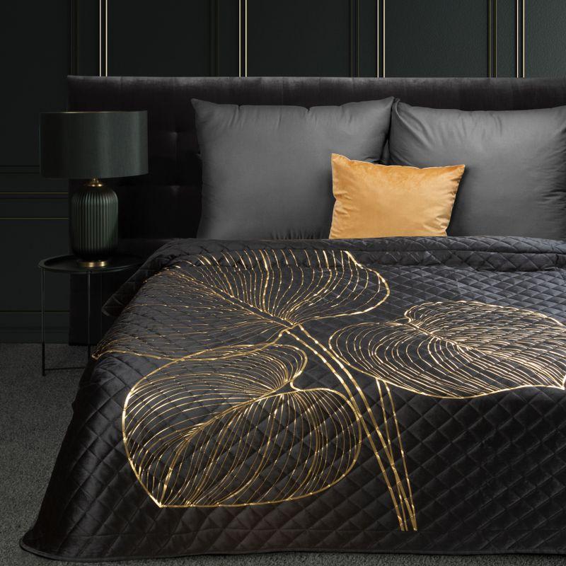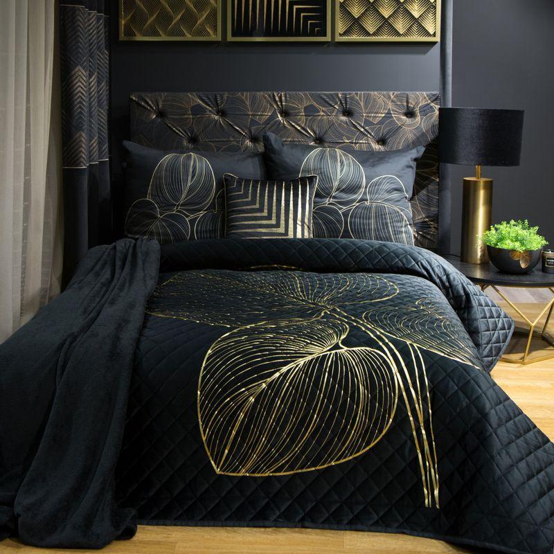 Samt ROLE 220×240 cm schwarz, gold gemustert 1