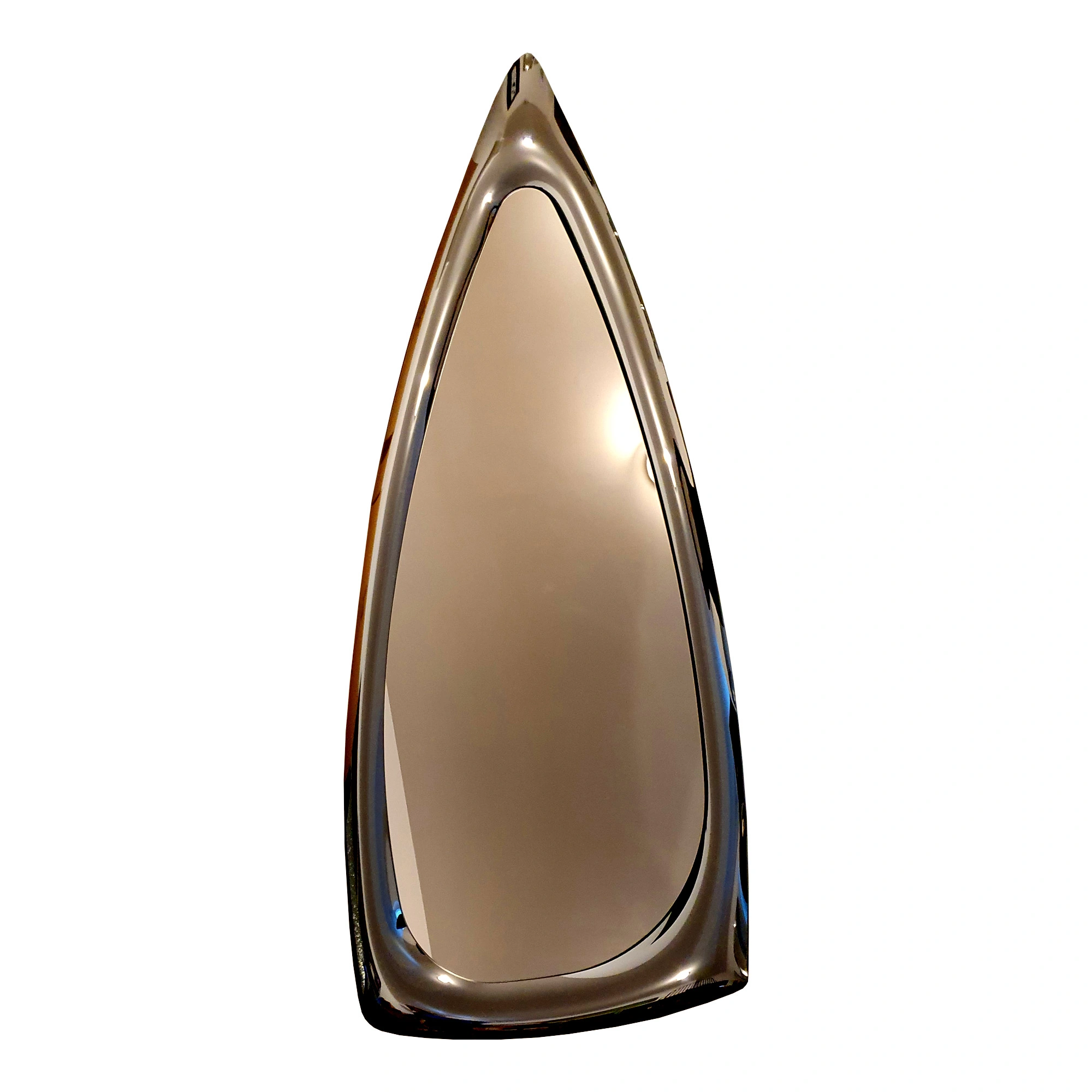 Entdecken Sie das einzigartige und unnachahmliche Design des Scudo Wandspiegels, der wahre Unkonventionalität präsentiert. Die ungewöhnliche dreieckige Form und das Bronze-Finish sowohl des verspiegelten Die ungewöhnliche dreieckige Form und das Bronze-Finish sowohl der Spiegelfläche als auch des Rahmens gehen über die traditionellen Formen hinaus, so dass der Spiegel mit Sicherheit ins Auge fällt und Ihrem Raum einen einzigartigen Stil verleiht. Der Spiegel passt perfekt in moderne Räume. Seine originelle, vollständig verspiegelte Form sieht nicht nur als eigenständige Dekoration gut aus, sondern lässt sich auch gut mit anderen dekorativen Elementen kombinieren. Das Modell Scudo ist ein einzigartiger Spiegel mit einer unregelmäßigen Dreiecksform. Er ist von einem schönen, gewölbten Rahmen in brauner Farbe umgeben . OberflächeDas Modell Scudo ist eine einzigartige Kombination aus origineller Form und raffiniertem Design. Diese Kombination verleiht dem Scudo Spiegel einen einzigartigen Charakter und ein außergewöhnliches Aussehen.
