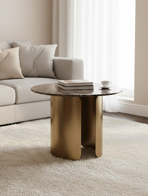 SECTIONAL TABLE Sockel aus Gold, Platte aus gesintertem Stein, modern