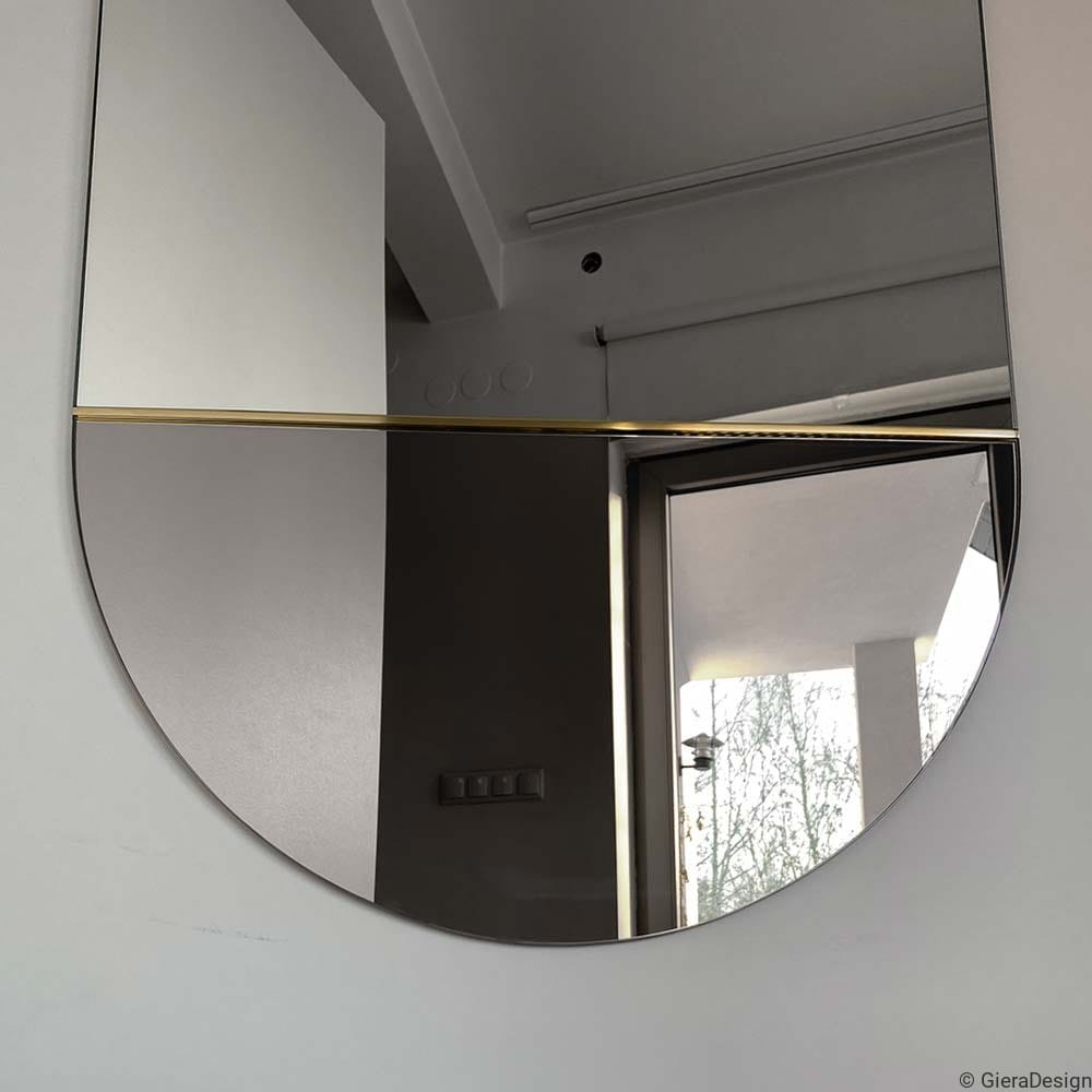 Moderner Wandspiegel Novi, in zwei Farbenmit einer modischen ovalen Formist ein Design, das sich auszeichnet durch einen harmonischen Mix aus Farben und Materialien. Lustro to łączy w sobie mehrfarbige Oberflächen und Messing-Elemente. Główna część, wykonana z wysokiej jakości Belgische Spiegelergänzt durch einen eleganten graphitfarbenen Spiegel. Te dwa elementy łączy zarter Riemen aus poliertem Messingund verleiht dem Ganzen einen edlen und raffinierten Charakter. Der Novi Spiegel in Graphitausführung ist eine stilvolle Ergänzung für das Wohnzimmer, die Diele oder das Esszimmer, aber auch für das Badezimmer ist er perfekt geeignet.