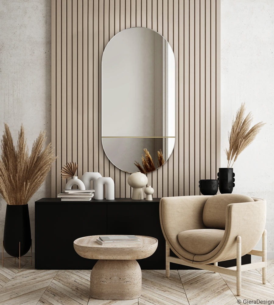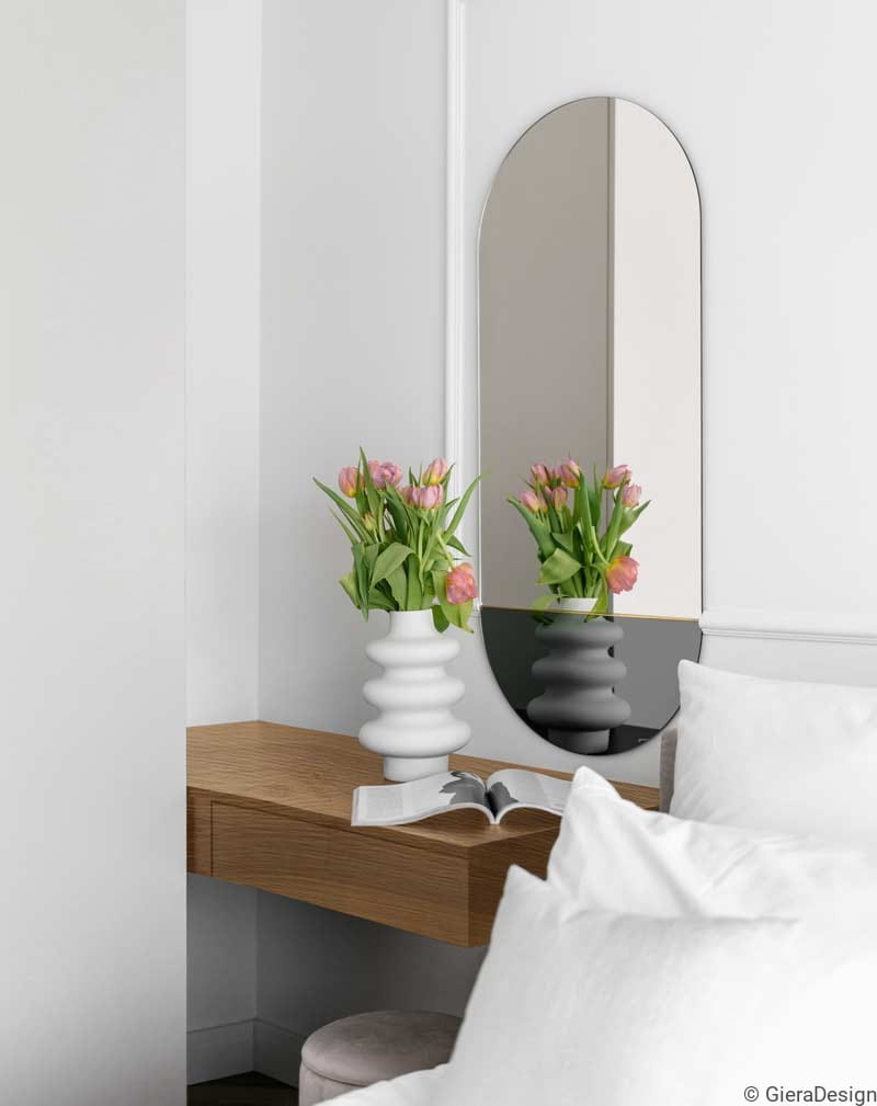 Der dekorative Spiegel Novi ist in verschiedenen Farbvariationen sowie als Option mit einer Ablage erhältlich. Es ist auch möglich, die Größe des Spiegels zu wählen, damit er perfekt zu Ihrer Einrichtung passt. Alle Kanten wurden sorgfältig geschliffen und poliert, um ein ästhetisch ansprechendes Aussehen zu gewährleisten. Der Spiegel ist auf der Rückseite mit speziellen Aufhängern für die vertikale oder horizontale Montage ausgestattet, so dass er sich leicht aufhängen lässt.
